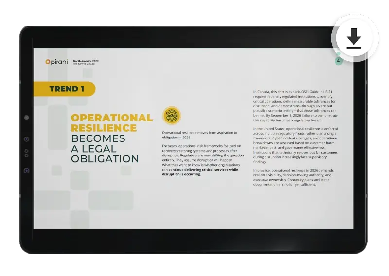 Download this report to understand how risk management in North America is evolving in 2026. Learn the five trends transforming operational resilience, cybersecurity, third-party risk, and governance—and what they mean for leadership in a low-tolerance risk environment.